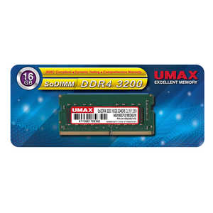 UMAX 増設メモリ/ DDR4-3200/PC4-25600/260pin Unbuffered SODIMM 16GB 1枚組 [SO-DIMM DDR4 /16GB /1枚] UM-SODDR4S-3200-16G/B