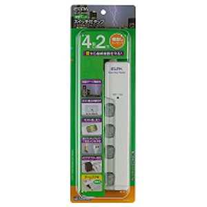 ELPA LEDランプスイッチ付タップ 横挿し (2P・4個口・2.0m) WLS-LY4200RS