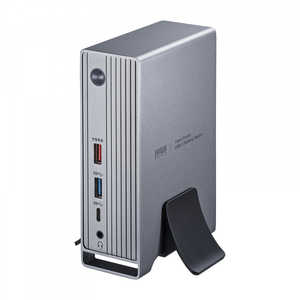 USB Type-Cケーブル1本の接続で最大3台のディスプレイに画面出力できるドッキングステーション。 ●USB Type-Cケーブル1本でディスプレイ最大3台(HDMI/Display Port)、各種USBデバイス、有線LAN、USBオーディオの拡張接続ができるUSB Type-Cドッキングステーションです。●自宅やオフィスなどではType-Cケーブル1本の接続で大画面ディスプレイとUSBデバイスで快適に操作し、外出や会議など移動時にはType-Cケーブル1本を抜くだけでさっと持ち運ぶことができます。●HDMI、Display Portを使用したディスプレイ1台出力時は最大4K/60Hz解像度に対応しています。(HDMI 1ポートは最大4K/30Hz)●ディスプレイを最大3台接続可能(HDMI×2+Display Port)。3台接続時の最大解像度は3840×2160(60Hz×2、30Hz×1)までサポートします。●本製品のDisplay PortからHDMI入力ディスプレイへの接続に使用できる、Display Port-HDMI変換ケーブル付きです。●USB Type-Cでの「USB Power Delivery(USB PD)」に対応しており、本製品から接続のノートパソコンへ最大100W(20V/5A)までの給電が行えます。●USB Power Delivery(USB PD)最大100W(20V/5A)の電源供給に対応し、本製品とノートパソコンの接続に使用できるUSB Type-Cケーブル付きです。●専用ACアダプタ付きで別途ACアダプタを準備する必要がなく、接続のノートパソコンへも安定して給電することができます。●Gigabit Ethernet(1000BASE-T)に対応していますので、Gigabitネットワーク環境にも対応でき、USB Type-Cケーブル1本で有線LAN接続をすることができます。●パソコン用スピーカー・マイク(3.5mmステレオミニプラグ)も接続でき、USBスピーカー・USBマイクとして利用することができます。●ドッキングステーションの前面には充電専用USBポート、USBハブ(USB A/USB Type-C)、3.5mmステレオミニジャックを搭載し、抜き挿し頻度が高い機器の使用に便利です。●コンパクトサイズで本体ケースはスタイリッシュなアルミ製です。●専用スタンド付きで本体の縦置き設置にも対応しており、デスクに省スペースで設置できます。※USB Type-Cポートを搭載し、Display Port Alternate Modeに対応しているパソコンでご使用いただけます。※すべての機器で動作を保証するものではありません。/パソコン・周辺機器・プリンター/PCサプライ・周辺機器/ドッキングステーション/サンワサプライ/4969887595176/コジマ/kojima/通販/通信販売/調理家電/生活家電/家電/キッチン家電/ネットショップ