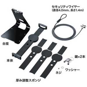 〔タブレット用[10~13インチ ~厚さ12mm]:セキュリティ〕 タブレットを盗難から防止する10~13インチのタブレットに対応した汎用セキュリティ。ブラック・スタンド付き。 〔タブレット用[10?13インチ ?厚さ12mm]:セキュリティ〕タブレットを盗難から防止する10?13インチのタブレットに対応した汎用セキュリティ。ブラック・スタンド付き。■ 10?13インチまでのタブレットに取り付けて、盗難から防止します。※厚み12mm以内、対角線長さ275?390mm以内のタブレットに対応します。■ 長さは約2mm間隔で調整でき、本体を伸ばした状態から縮めることで、簡単に最適な位置に設定できます。■ 厚み調整スポンジで、機種による隙間を調整できます※厚み3種類のシールでの重ね貼りになります。■ 付属のセキュリティワイヤーで机の脚などに巻きつけることができます。■ スタンドに取り付けた状態で、回転、上下角度調整が可能です。■ スタンドにはネジ穴がありますので、木製の机などに固定も可能です。※ネジは付属していません。皿頭タッピングネジ3×15mm別途必要です。※一部機種には対応していない場合があります。※対応サイズ内であれば、ケースに入れたまま取付けも可能です。/パソコン・周辺機器・プリンター/PCサプライ・周辺機器/パソコンサプライ/セキュリティー用品/サンワサプライ/4969887892589/コジマ/kojima/通販/通信販売/調理家電/生活家電/家電/キッチン家電/ネットショップ
