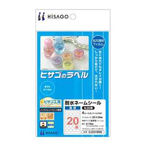ヒサゴ 耐水ネームシール 丸 20面 透明 CJ3319NS